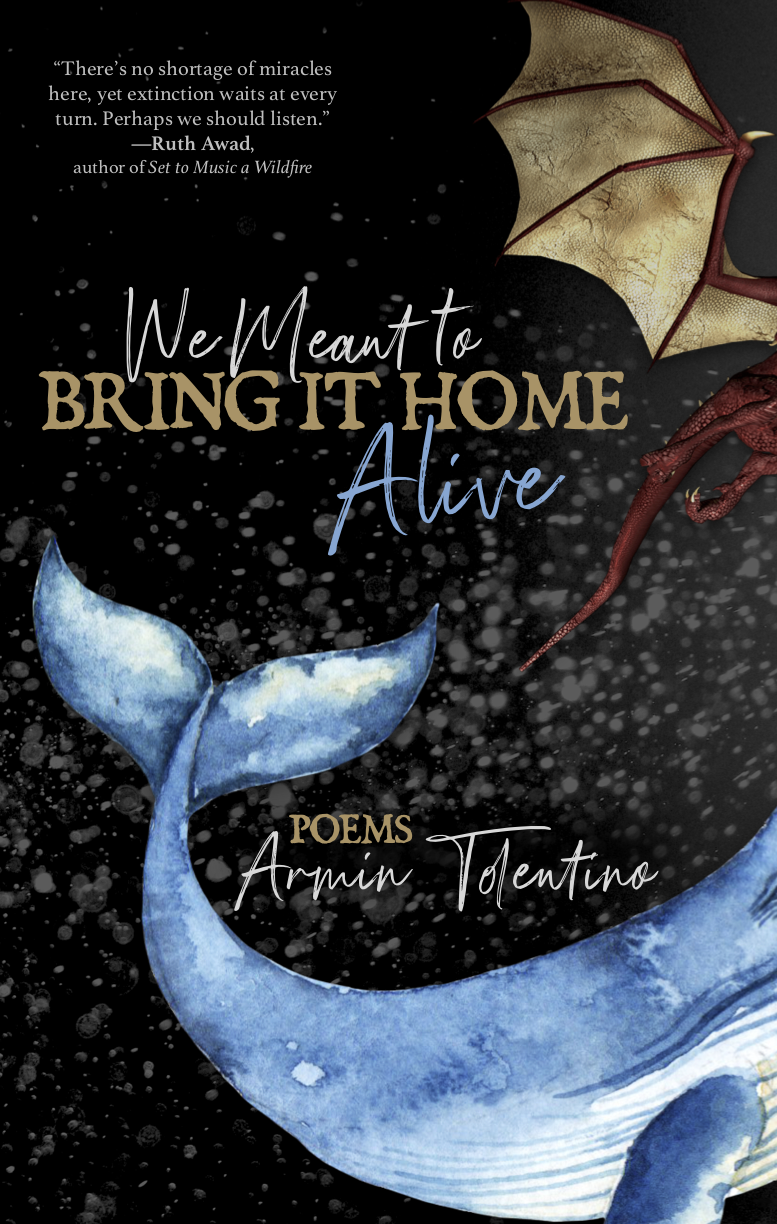 “Daring and awe battle hubris and cowardice throughout the hypnotic rhythms and kaleidoscopic motifs of We Meant to Bring It Home Alive. Delving into deep space, deep earth, and human folly, Armin Tolentino evokes the likes of Moby-Dick, ‘Space Oddity,’ Commander Keen, Genesis, and the Gospels. Unreceived letters and black box recordings seem to converse, impossibly, across empty darkness; ‘the liturgy of numbers’ offers hope to a wife on a widow’s walk, while numerology entices a radio preacher; an astronaut returns to Earth after years of deep-space hibernation to witness the aftermath of mass extinction beneath a dying sun; longing and absence fill the space of a rapidly expanding universe. Meanwhile, on Earth, mankind gambles with God and the angels, and the game isn’t yet over—who will and won’t see whose hands? We Meant to Bring It Home Alive barrels out to the horizons of knowing, to ‘stand / on the thin division between is and is not,’ elegantly questioning humanity’s relationship to our planet’s past and increasingly uncertain future. Mesmerizing, thought-provoking, and deliciously entertaining, Tolentino’s collection will haunt your dreams.”