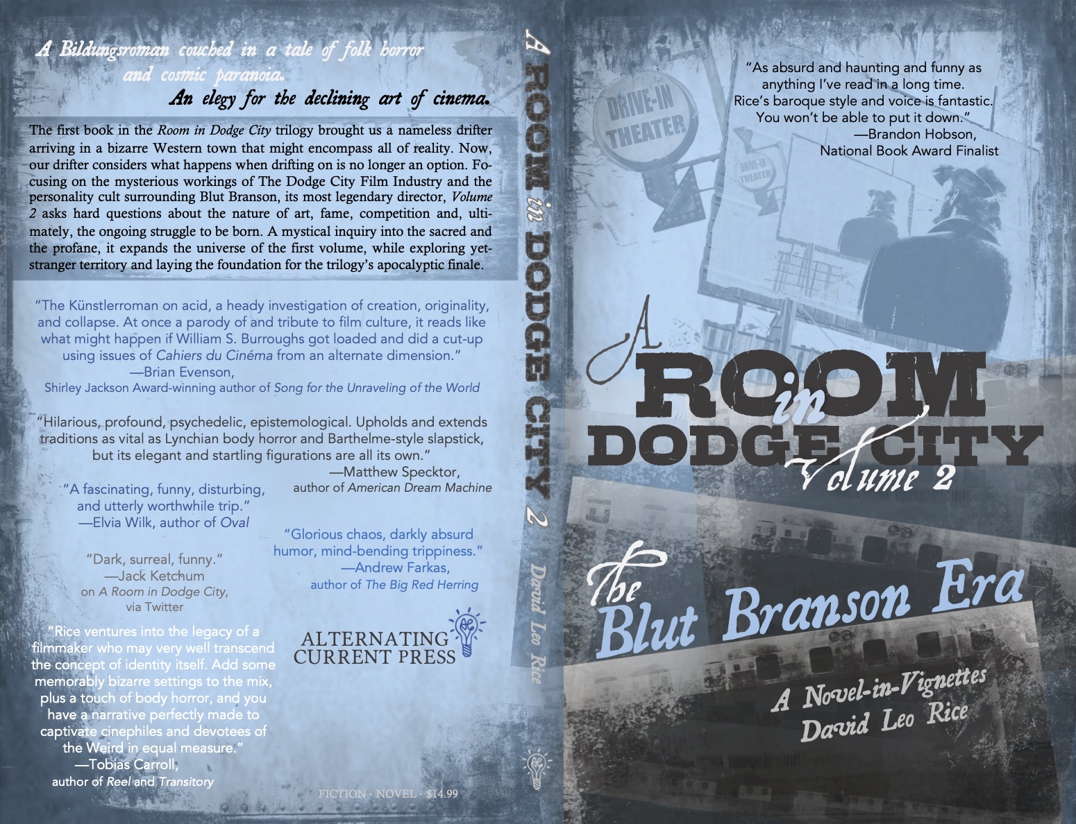 “Go deep enough into certain cinematic subcultures and the term ‘cult film’ begins to take on an unsettling new significance. In A Room in Dodge City, Volume 2: The Blut Branson Era, David Leo Rice ventures into the legacy of a filmmaker who may very well transcend the concept of identity itself. Add some memorably bizarre settings to the mix, plus a touch of body horror, and you have a narrative perfectly made to captivate cinephiles and devotees of the Weird in equal measure.”